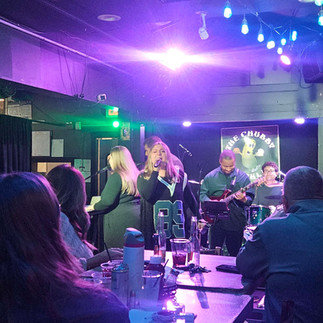 But I can't not mention the rest of the band....Shai on guitar and James on bass round out the band. Super talented and fun to watch. When this crew of six comes together it's magical <glitter bomb thrown>.